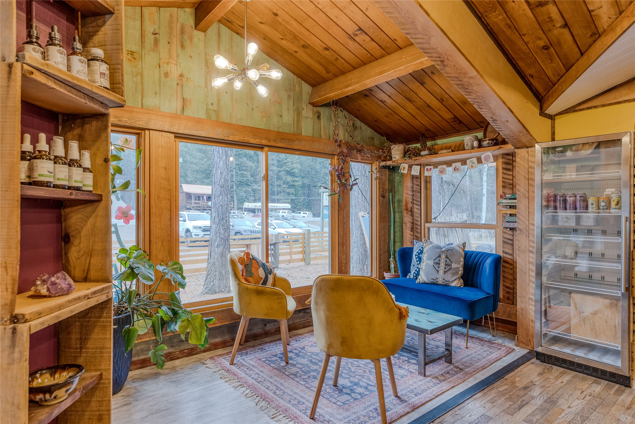 Nestled in the heart of Bigfork Village near Wayfarers State Park, Flathead Lake, and Electric Avenue, this charming commercial cottage combines versatility with character. Featuring a log cabin vibe with wood-beamed ceilings, a certified commercial kitchen (2022), ample storage, open yet cozy interiors, and a stage for entertainment, this property is primed for your creative vision. The fenced yard, indoor/outdoor seating, and level parking area make it ideal for a cafe, market, studio, office or retail. Bring your ideas! With highway frontage, a picturesque setting, and live/work potential, this property offers a rare opportunity in a prime location. Furniture and fixtures package available separately.
